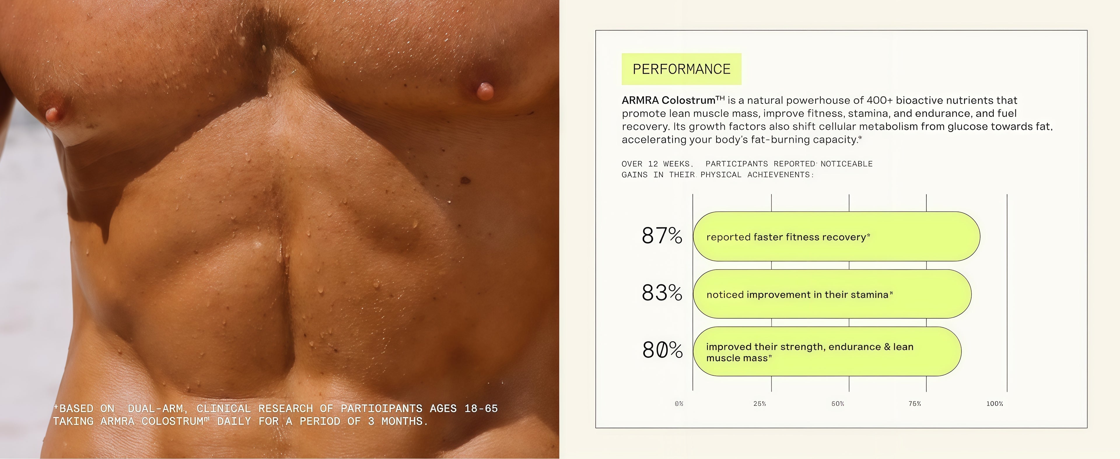 ARMRA Colostrum®DELIVERS NOTICEABLE HEALTH BENEFITS IN DUAL-ARM, CLINICAL RESEARCH.*
